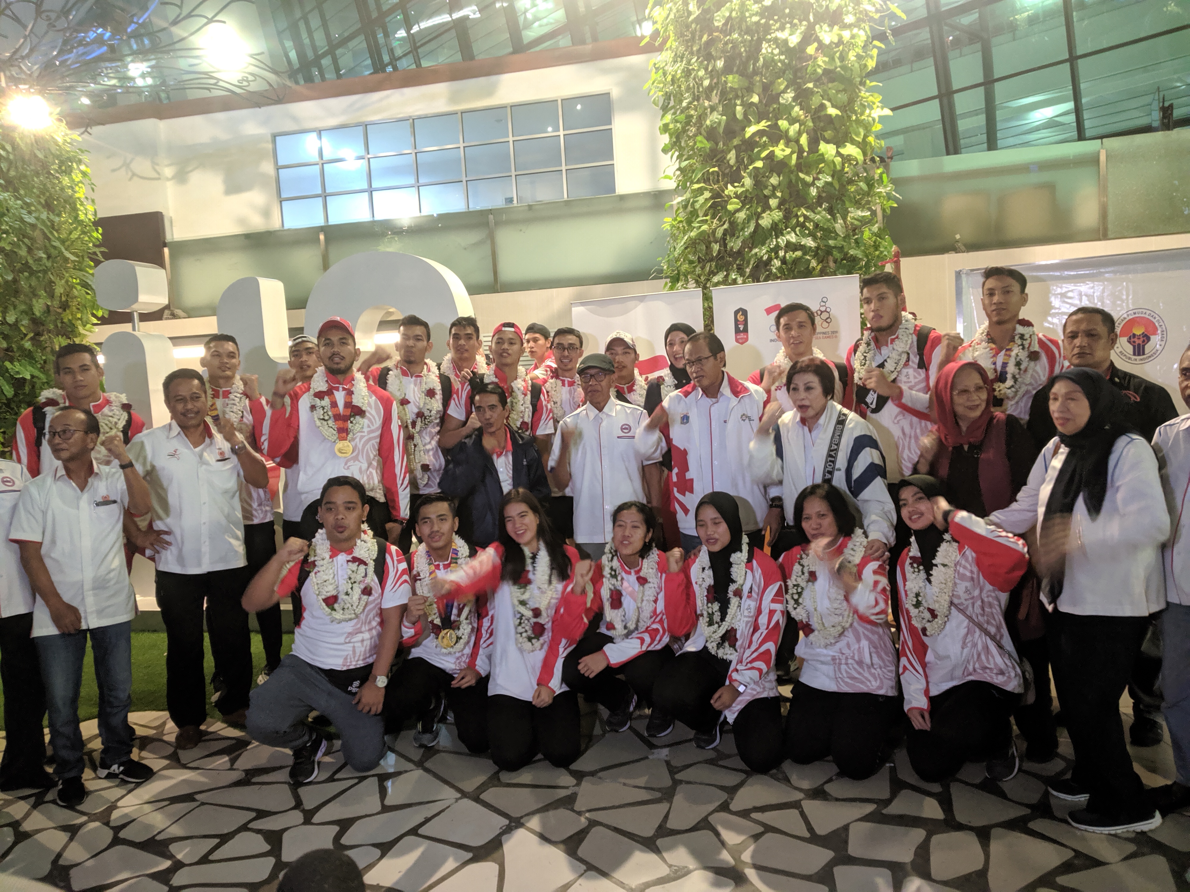 Para atlet disambut dengan suka dan bahagia, baik oleh pengurus PP PBVSI, KOI dan sanak keluarga yang memberikan salam hangat atas keberhasilan meraih medali emas setelah beberapa tahun silam absen.