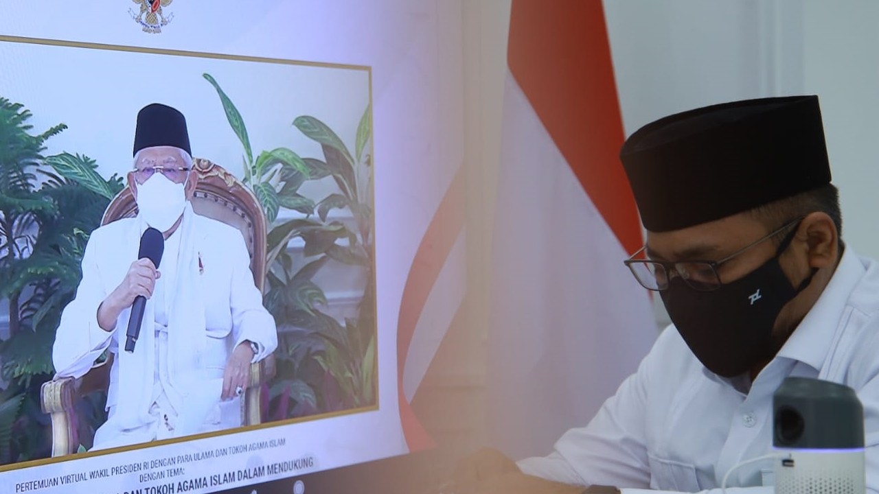 Hal ini disampaikan Wapres Ma’ruf Amin dalam pertemuan virtual bersama para ulama tokoh agama Islam dan kepala daerah. Hadir secara virtual mendampingi Wapres, Menteri Agama Yaqut Cholil Qoumas.