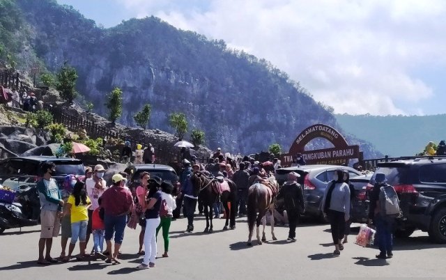 Wisatawan memadati TWA Gunung Tangkuban Parahu, Sabtu (22/8/2020). (ANTARA)